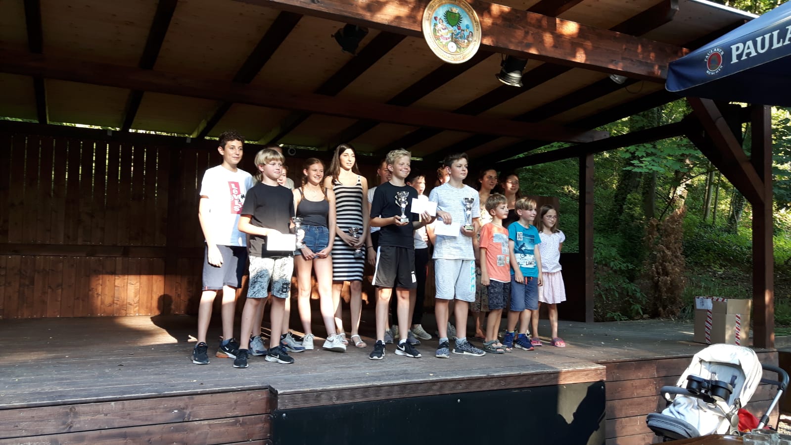 Die Schwimmer, Eltern und Trainer trafen sich am Mittwoch, 24.7. zum Saisonabschluss im CBC Biergarten/Korber Schützenhaus.